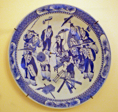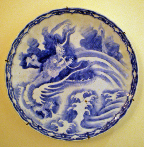 Dragon lashing up a tsunami. Porcelain fluted dish. Edo period. Japan.